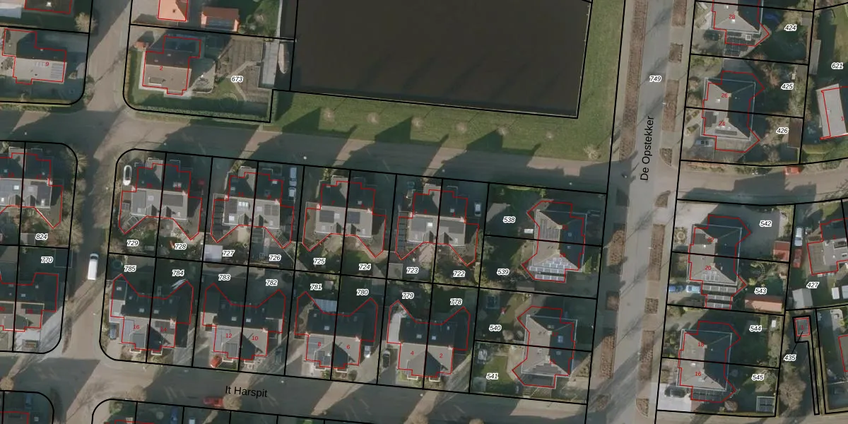 Het adres is gelegen op perceel 723 in de sectie D en de kadastrale gemeente Akkrum. De kadastrale aanduiding is aldus AKM02-D-723. De gemiddelde perceelgrootte in Akkrum is 5689,55 m². Dit perceel is kleiner: de perceeloppervlakte bedraagt 272 m². De grootste perceeloppervlakte in de kadastrale gemeente is 16,9 ha. De kleinste oppervlakte bedraagt 0 m². Dit is het enige adres dat aanwezig is op het perceel. In de Basisregistratie Kadaster (BRK) werden de grenzen van het perceel geregistreerd op 11-06-2003.