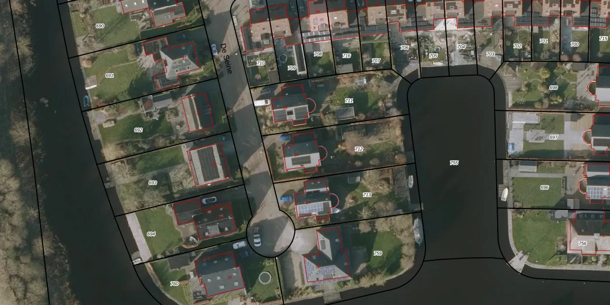 Gebruik de zoekbalk of klik op een perceel voor informatie over de adressen binnen dit perceel.