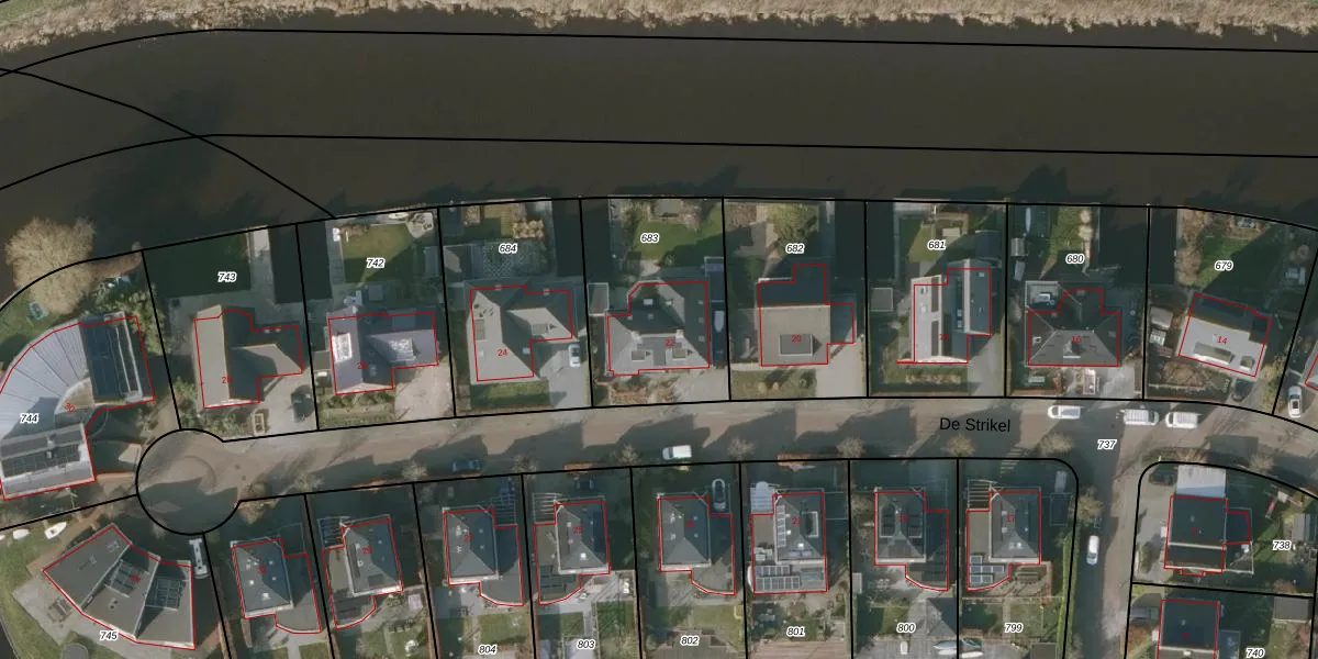 Het perceel waarop De Strikel 22 staat heeft een oppervlakte van 668 m². Dit is een groot perceel. De perceeloppervlakte wordt geregistreerd door het Kadaster. Gedetailleerde informatie over de maten van dit perceel kunt u vinden in het rapport Kadastrale kaart met maatvoering van De Strikel 22.