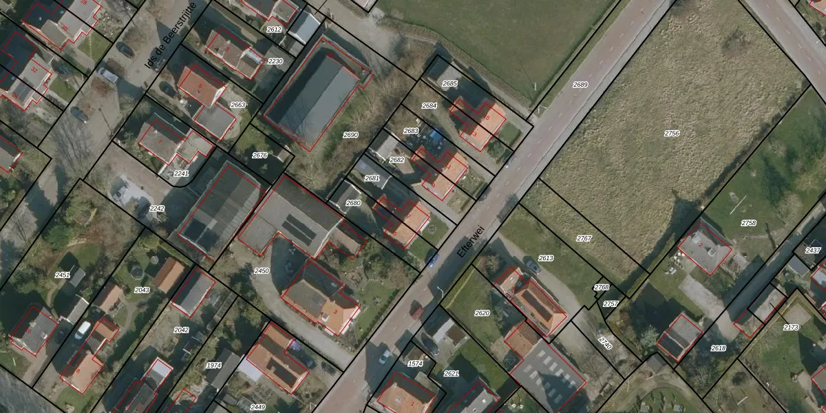Gebruik de zoekbalk of klik op een perceel voor informatie over de adressen binnen dit perceel.