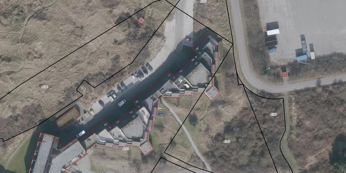Het perceel waarop het adres ligt is NES01-A-4291. De afkorting 'NES01' staat voor kadastrale gemeente Nes Ameland. Het perceel is kleiner dan gemiddeld in Nes Ameland. Het perceel is 8890 m² groot, terwijl het gemiddelde ligt op 7,0 ha. Het grootste perceel in de kadastrale gemeente is 58,73 km². Het kleinste perceel heeft een oppervlakte van 1 m². Er zijn 49 adressen aanwezig op het perceel. In de Basisregistratie Kadaster (BRK) werden de grenzen van het perceel geregistreerd op 30-06-2005.