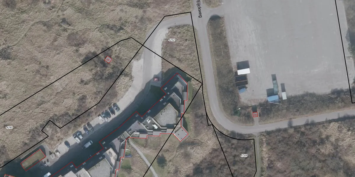 Het perceel waarop het adres ligt is NES01-A-4291. De afkorting 'NES01' staat voor kadastrale gemeente Nes Ameland. Het perceel is kleiner dan gemiddeld in Nes Ameland. Het perceel is 8890 m² groot, terwijl het gemiddelde ligt op 7,0 ha. Het grootste perceel in de kadastrale gemeente is 58,73 km². Het kleinste perceel heeft een oppervlakte van 1 m². Op het perceel zijn 49 adressen aanwezig. In de Basisregistratie Kadaster (BRK) werden de grenzen van het perceel geregistreerd op 30-06-2005.