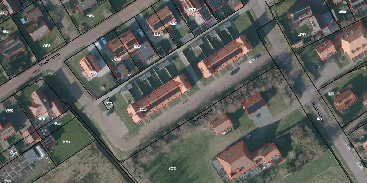 Het perceel waarop Heringhiem 12 staat heeft een oppervlakte van 8270 m². Dit is een zeer groot perceel. De perceeloppervlakte wordt geregistreerd door het Kadaster. Gedetailleerde informatie over de maten van dit perceel kunt u vinden in het rapport Kadastrale kaart met maatvoering van Heringhiem 12.