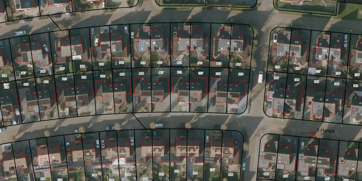 Het perceel waarop It Harspit 24 staat heeft een oppervlakte van 262 m². Dit is een middelgroot perceel. De perceeloppervlakte wordt geregistreerd door het Kadaster. Gedetailleerde informatie over de maten van dit perceel kunt u vinden in het rapport Kadastrale kaart met maatvoering van It Harspit 24.