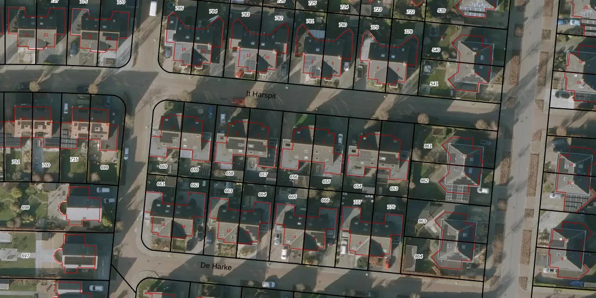 Het perceel waarop It Harspit 7 staat heeft een oppervlakte van 279 m². Dit is een middelgroot perceel. De perceeloppervlakte wordt geregistreerd door het Kadaster. Gedetailleerde informatie over de maten van dit perceel kunt u vinden in het rapport Kadastrale kaart met maatvoering van It Harspit 7.