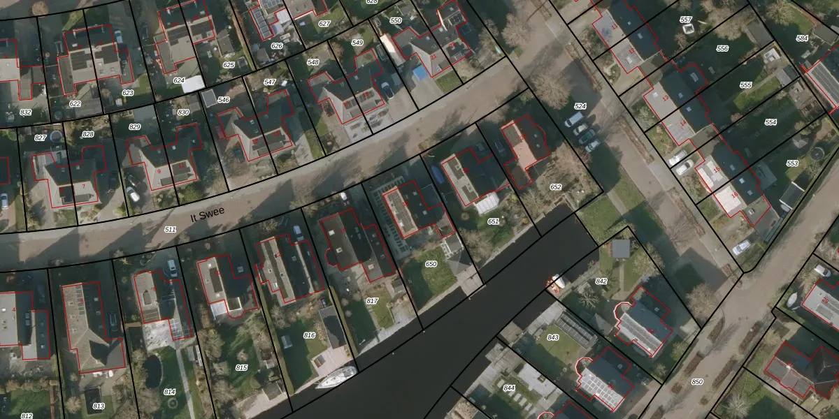 Het perceel waarop It Swee 16 staat heeft een oppervlakte van 603 m². Dit is een groot perceel. De perceeloppervlakte wordt geregistreerd door het Kadaster. Gedetailleerde informatie over de maten van dit perceel kunt u vinden in het rapport Kadastrale kaart met maatvoering van It Swee 16.