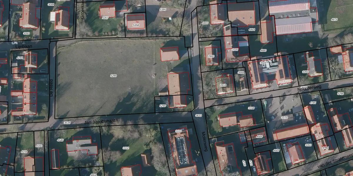 Het perceel waarop Jan Jacobstraat 7-a staat heeft een oppervlakte van 3117 m². Dit is een zeer groot perceel. De perceeloppervlakte wordt geregistreerd door het Kadaster. Gedetailleerde informatie over de maten van dit perceel kunt u vinden in het rapport Kadastrale kaart met maatvoering van Jan Jacobstraat 7-a.