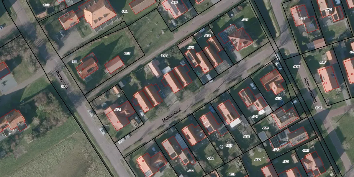 Het perceel waarop Molenplaat 16 staat heeft een oppervlakte van 3186 m². Dit is een zeer groot perceel. De perceeloppervlakte wordt geregistreerd door het Kadaster. Gedetailleerde informatie over de maten van dit perceel kunt u vinden in het rapport Kadastrale kaart met maatvoering van Molenplaat 16.