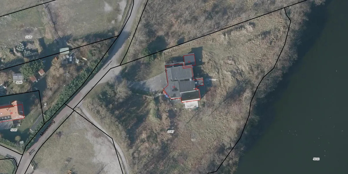 Het perceel waarop Molenweg 12 staat heeft een oppervlakte van 8000 m². Dit is een zeer groot perceel. De perceeloppervlakte wordt geregistreerd door het Kadaster. Gedetailleerde informatie over de maten van dit perceel kunt u vinden in het rapport Kadastrale kaart met maatvoering van Molenweg 12.