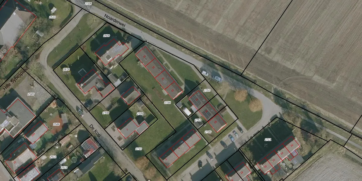 Noarderwei 22 is gelegen op kadastraal perceel NES02B2754. Deze kadastrale aanduiding is uniek en wordt gebruikt door het Kadaster om eigendomsrechten en andere zakelijke rechten vast te leggen. Het perceel maakt onderdeel uit van de kadastrale gemeente Nes.
