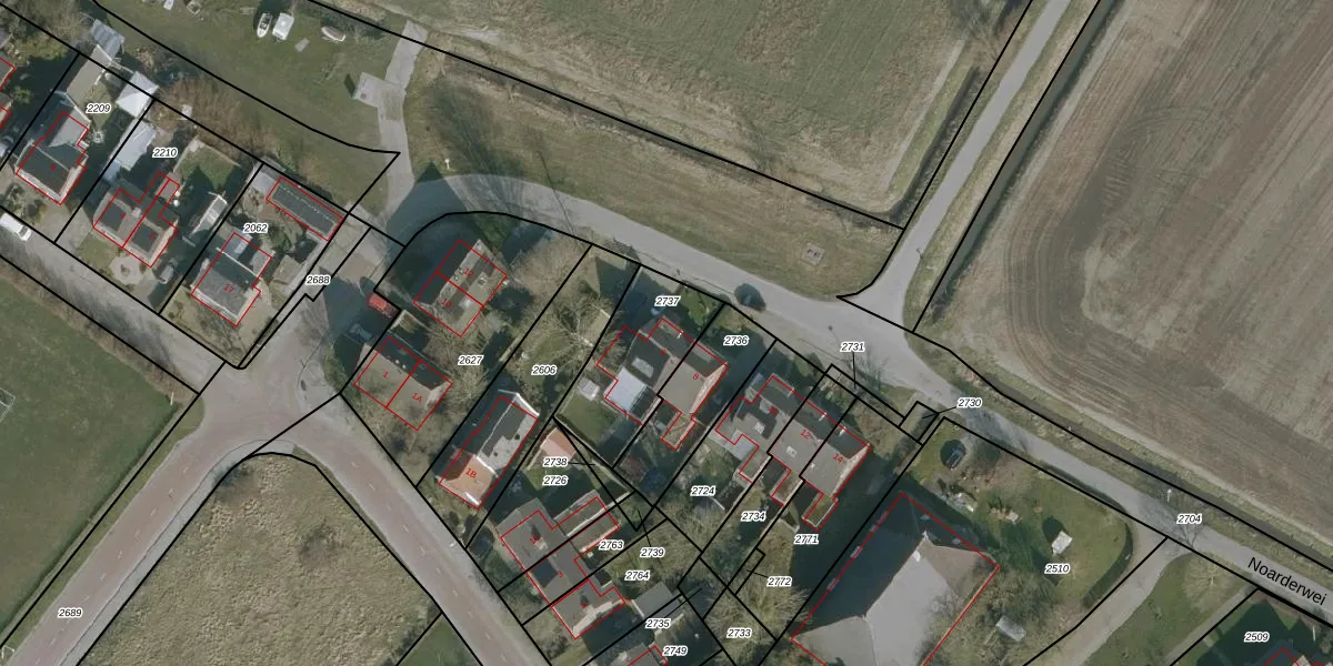 Noarderwei 6 is gelegen op kadastraal perceel NES02B2737. Deze kadastrale aanduiding is uniek en wordt gebruikt door het Kadaster om eigendomsrechten en andere zakelijke rechten vast te leggen. Het perceel maakt onderdeel uit van de kadastrale gemeente Nes.