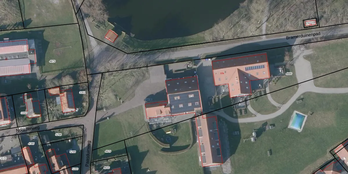Paasduinweg 12-b is gelegen op kadastraal perceel NES01A4886. Deze kadastrale aanduiding is uniek en wordt gebruikt door het Kadaster om eigendomsrechten en andere zakelijke rechten vast te leggen. Het perceel maakt onderdeel uit van de kadastrale gemeente Nes Ameland.