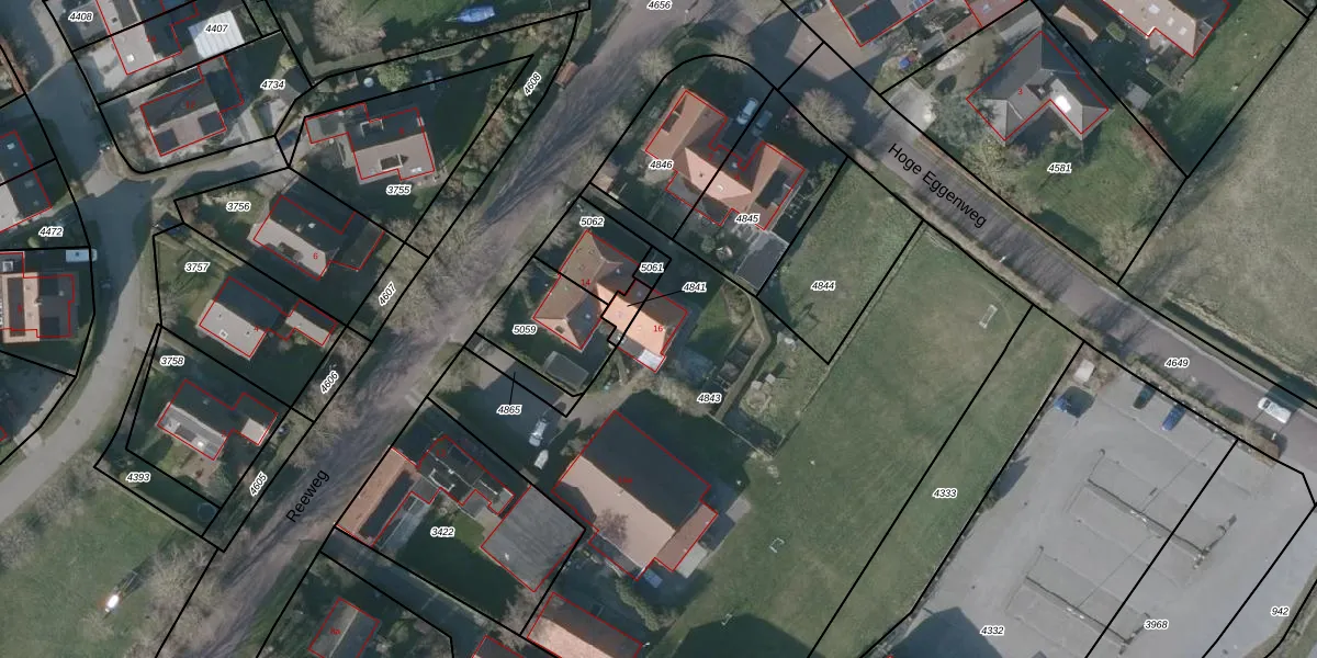 Het perceel waarop Reeweg 16 staat heeft een oppervlakte van 3590 m². Dit is een zeer groot perceel. De perceeloppervlakte wordt geregistreerd door het Kadaster. Gedetailleerde informatie over de maten van dit perceel kunt u vinden in het rapport Kadastrale kaart met maatvoering van Reeweg 16.