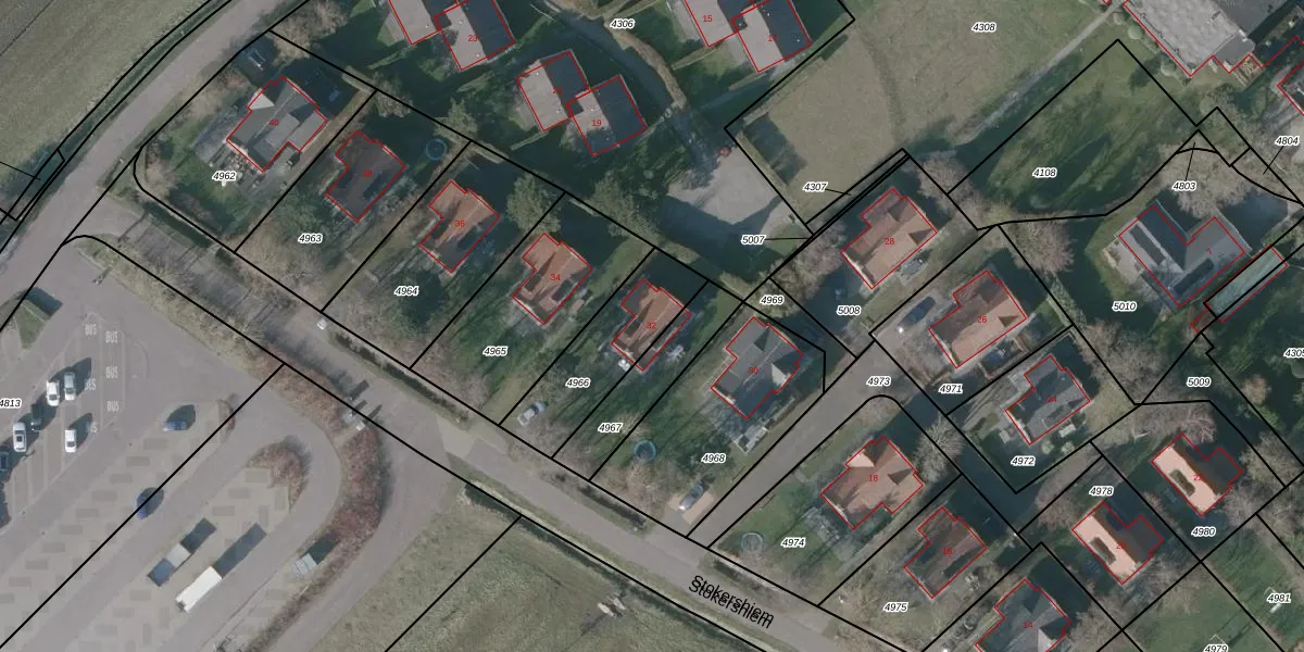 Het perceel waarop Stokershiem 32 staat heeft een oppervlakte van 346 m². Dit is een groot perceel. De perceeloppervlakte wordt geregistreerd door het Kadaster. Gedetailleerde informatie over de maten van dit perceel kunt u vinden in het rapport Kadastrale kaart met maatvoering van Stokershiem 32.