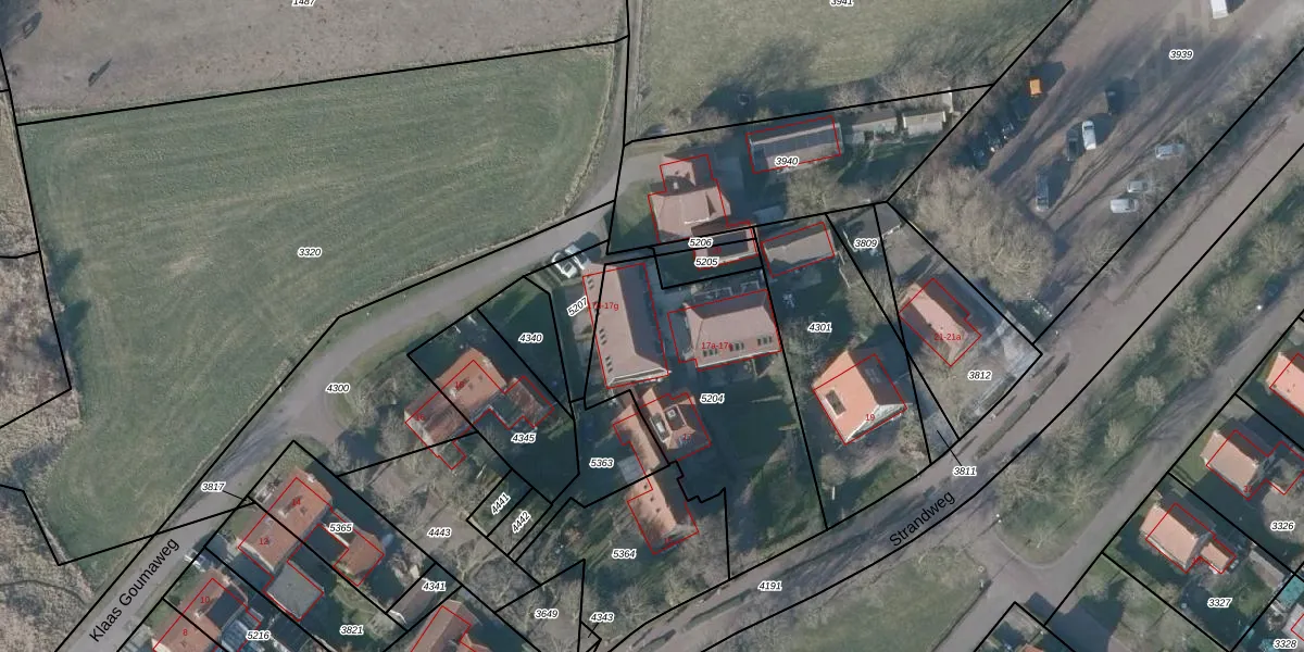 Strandweg 17-e is gelegen op kadastraal perceel NES01A5204. Deze kadastrale aanduiding is uniek en wordt gebruikt door het Kadaster om eigendomsrechten en andere zakelijke rechten vast te leggen. Het perceel maakt onderdeel uit van de kadastrale gemeente Nes Ameland.