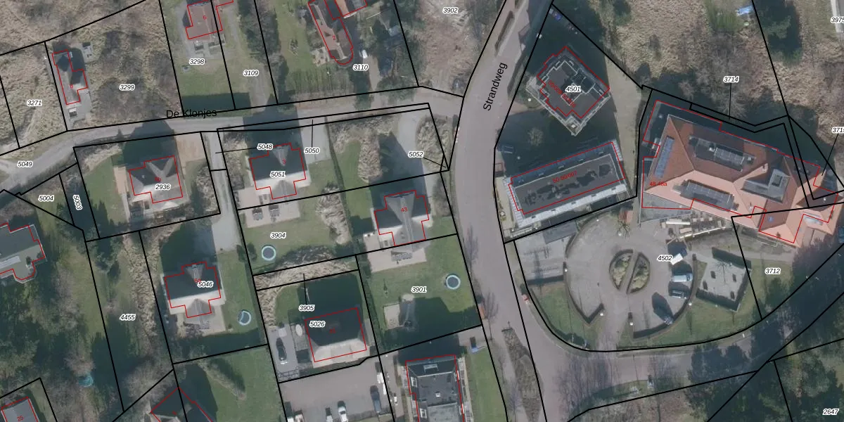 Strandweg 43 is gelegen op kadastraal perceel NES01A3904. Deze kadastrale aanduiding is uniek en wordt gebruikt door het Kadaster om eigendomsrechten en andere zakelijke rechten vast te leggen. Het perceel maakt onderdeel uit van de kadastrale gemeente Nes Ameland.