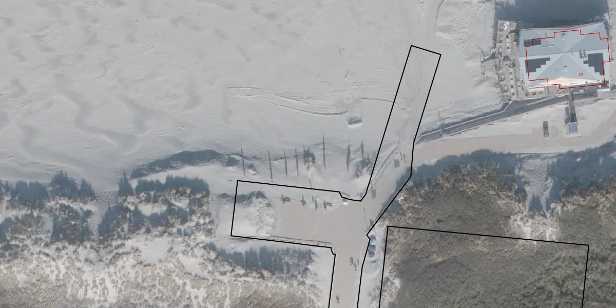 Het perceel waarop Strandweg 70-a staat heeft een oppervlakte van 53,0 ha. Dit is een zeer groot perceel. De perceeloppervlakte wordt geregistreerd door het Kadaster. Gedetailleerde informatie over de maten van dit perceel kunt u vinden in het rapport Kadastrale kaart met maatvoering van Strandweg 70-a.