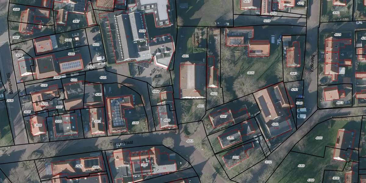 Het perceel waarop Torenstraat 16 staat heeft een oppervlakte van 691 m². Dit is een groot perceel. De perceeloppervlakte wordt geregistreerd door het Kadaster. Gedetailleerde informatie over de maten van dit perceel kunt u vinden in het rapport Kadastrale kaart met maatvoering van Torenstraat 16.