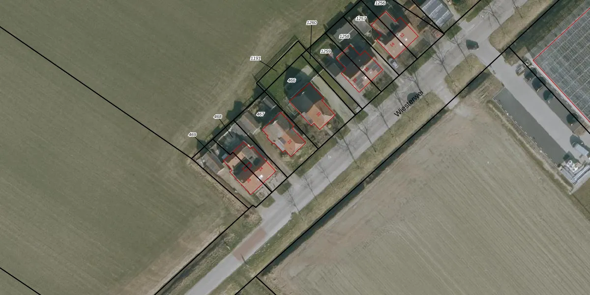 Wiesterwei 22 is gelegen op kadastraal perceel NES02C467. Deze kadastrale aanduiding is uniek en wordt gebruikt door het Kadaster om eigendomsrechten en andere zakelijke rechten vast te leggen. Het perceel maakt onderdeel uit van de kadastrale gemeente Nes.