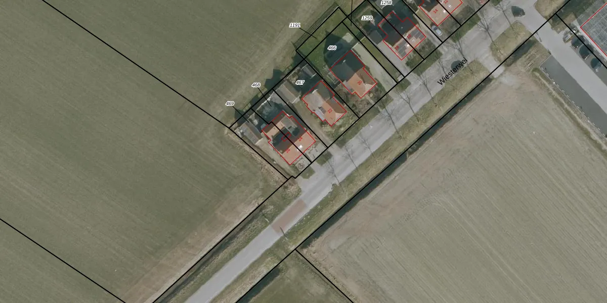 Wiesterwei 24 is gelegen op kadastraal perceel NES02C468. Deze kadastrale aanduiding is uniek en wordt gebruikt door het Kadaster om eigendomsrechten en andere zakelijke rechten vast te leggen. Het perceel maakt onderdeel uit van de kadastrale gemeente Nes.
