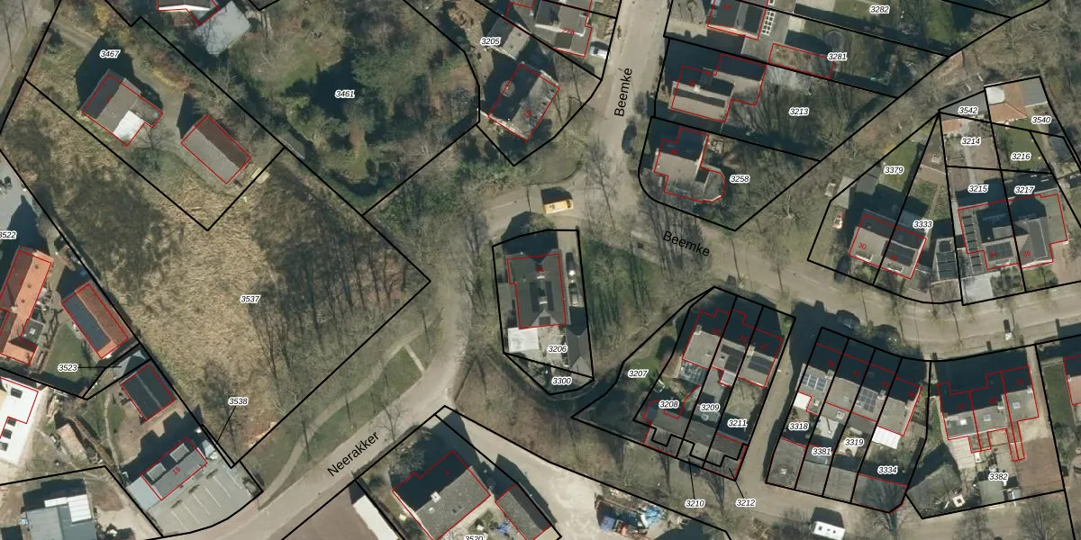 Gebruik de zoekbalk of klik op een perceel voor informatie over de adressen binnen dit perceel.