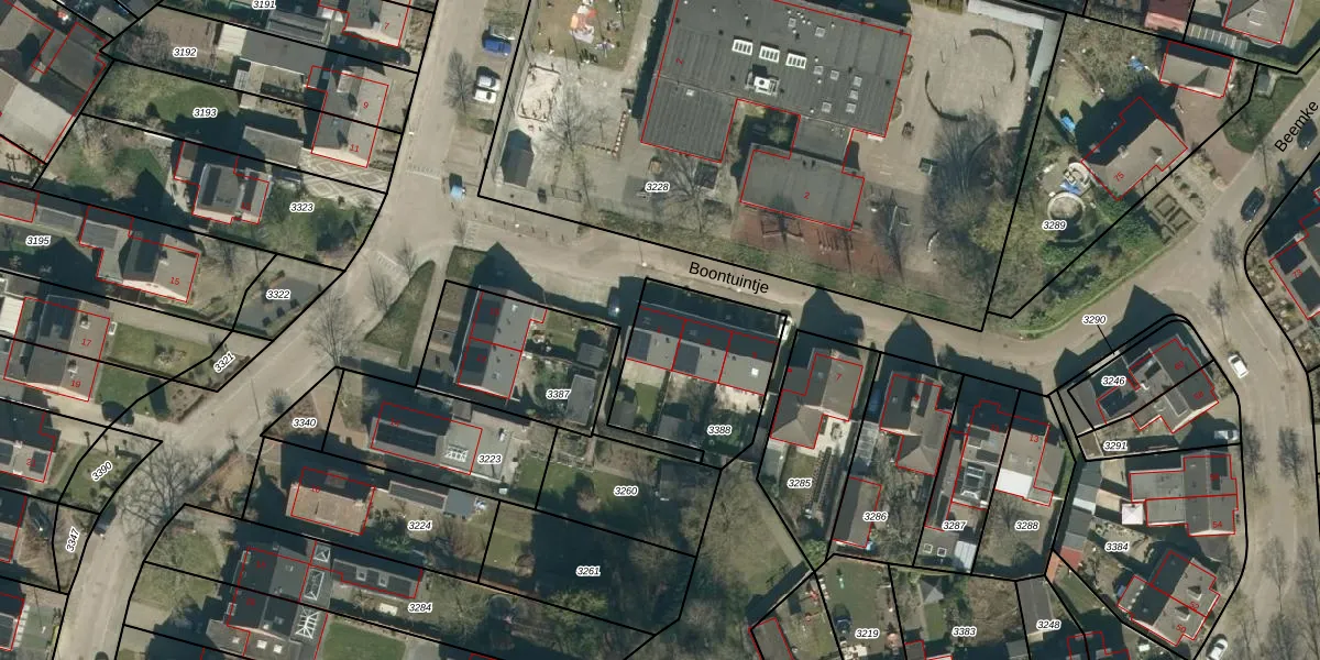Het perceel waarop Boontuintje 1 staat heeft een oppervlakte van 511 m². Dit is een groot perceel. De perceeloppervlakte wordt geregistreerd door het Kadaster. Gedetailleerde informatie over de maten van dit perceel kunt u vinden in het rapport Kadastrale kaart met maatvoering van Boontuintje 1.