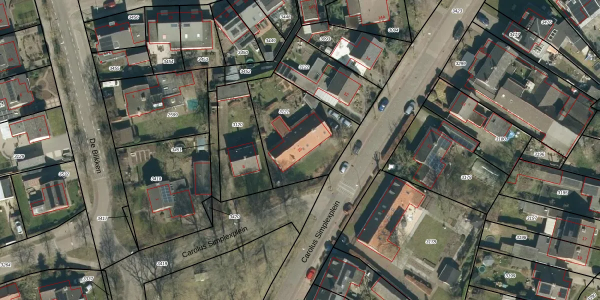 Carolus Simplexplein 10 is gelegen op kadastraal perceel BDL01A3121. Deze kadastrale aanduiding is uniek en wordt gebruikt door het Kadaster om eigendomsrechten en andere zakelijke rechten vast te leggen. Het perceel maakt onderdeel uit van de kadastrale gemeente Bladel.