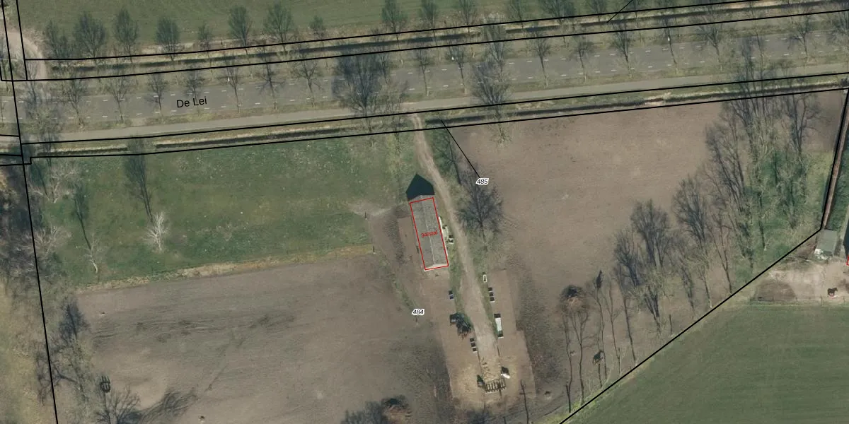 De Lei 34-stal is gelegen op kadastraal perceel BDL01L484. Deze kadastrale aanduiding is uniek en wordt gebruikt door het Kadaster om eigendomsrechten en andere zakelijke rechten vast te leggen. Het perceel maakt onderdeel uit van de kadastrale gemeente Bladel.