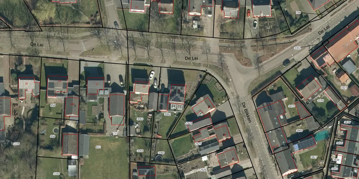 Het perceel waarop De Lei 8 staat heeft een oppervlakte van 716 m². Dit is een groot perceel. De perceeloppervlakte wordt geregistreerd door het Kadaster. Gedetailleerde informatie over de maten van dit perceel kunt u vinden in het rapport Kadastrale kaart met maatvoering van De Lei 8.