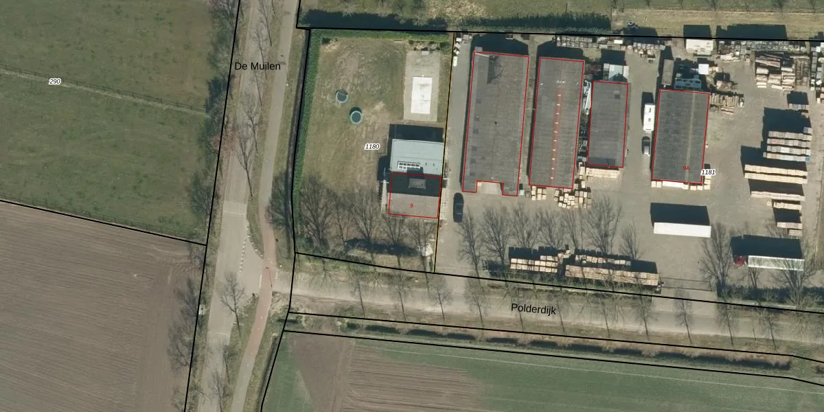 Het perceel waarop Polderdijk 9 staat heeft een oppervlakte van 2020 m². Dit is een zeer groot perceel. De perceeloppervlakte wordt geregistreerd door het Kadaster. Gedetailleerde informatie over de maten van dit perceel kunt u vinden in het rapport Kadastrale kaart met maatvoering van Polderdijk 9.