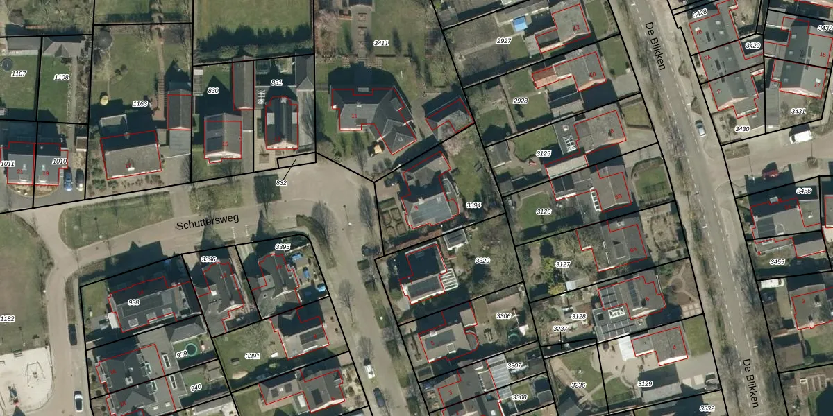 Schuttersweg 9 is gelegen op kadastraal perceel BDL01A3394. Deze kadastrale aanduiding is uniek en wordt gebruikt door het Kadaster om eigendomsrechten en andere zakelijke rechten vast te leggen. Het perceel maakt onderdeel uit van de kadastrale gemeente Bladel.