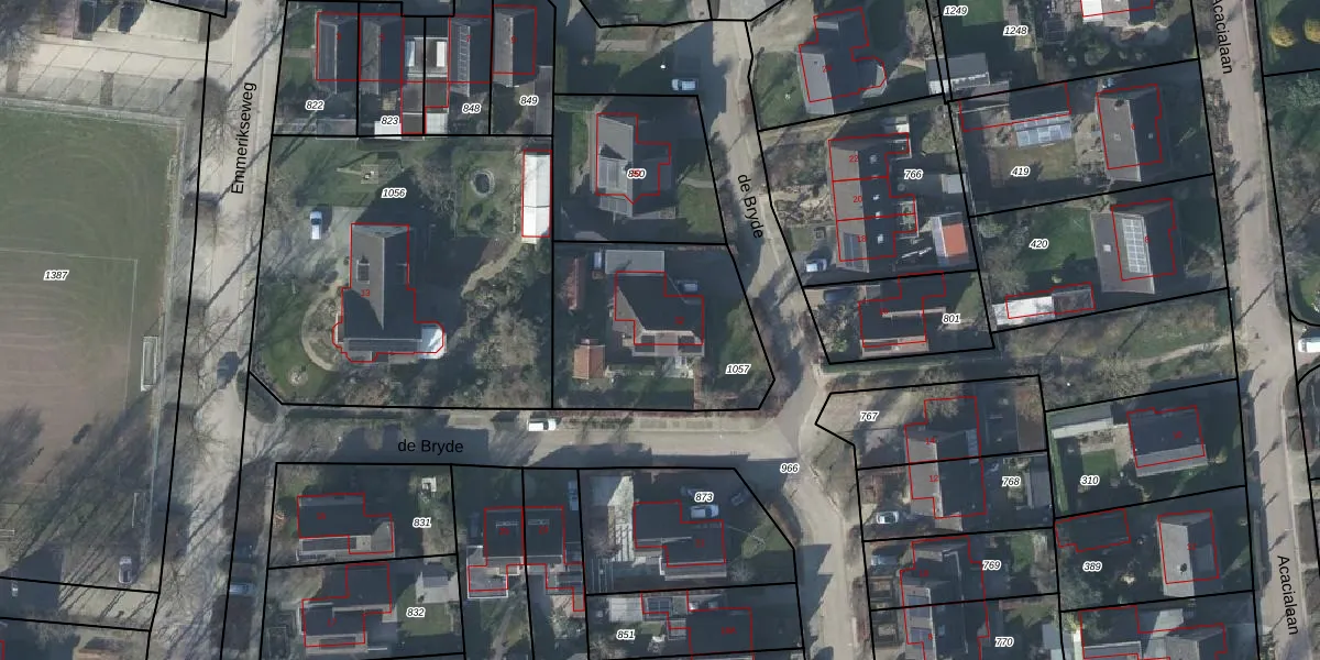 Het perceel waarop de Bryde 32 staat heeft een oppervlakte van 773 m². Dit is een groot perceel. De perceeloppervlakte wordt geregistreerd door het Kadaster. Gedetailleerde informatie over de maten van dit perceel kunt u vinden in het rapport Kadastrale kaart met maatvoering van de Bryde 32.