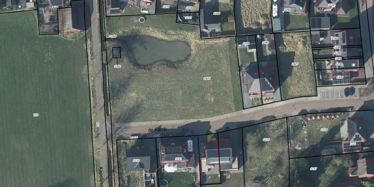 de Kamp 1-E is gelegen op kadastraal perceel GDG00H1425. Deze kadastrale aanduiding is uniek en wordt gebruikt door het Kadaster om eigendomsrechten en andere zakelijke rechten vast te leggen. Het perceel maakt onderdeel uit van de kadastrale gemeente Gendringen.