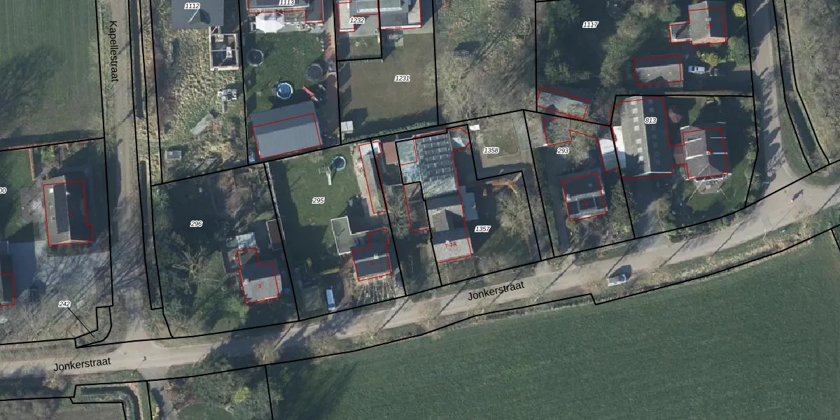 Het perceel waarop Jonkerstraat 7-A staat heeft een oppervlakte van 615 m². Dit is een groot perceel. De perceeloppervlakte wordt geregistreerd door het Kadaster. Gedetailleerde informatie over de maten van dit perceel kunt u vinden in het rapport Kadastrale kaart met maatvoering van Jonkerstraat 7-A.