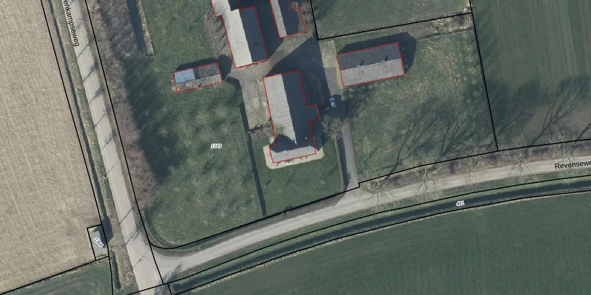Het perceel waarop Revenseweg 2 staat heeft een oppervlakte van 9840 m². Dit is een zeer groot perceel. De perceeloppervlakte wordt geregistreerd door het Kadaster. Gedetailleerde informatie over de maten van dit perceel kunt u vinden in het rapport Kadastrale kaart met maatvoering van Revenseweg 2.