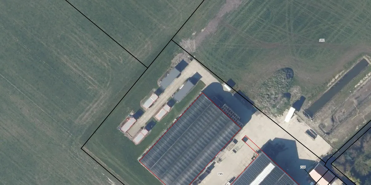Het adres is gelegen op perceel 745 in de sectie N en de kadastrale gemeente Wognum. De kadastrale aanduiding is aldus WNM00-N-745. De gemiddelde perceeloppervlakte in de kadastrale gemeente Wognum is 3719,38 m². Dit perceel is met zijn 9838 m² dus groter dan gemiddeld. Het grootste perceel in de kadastrale gemeente is 49,0 ha. Het kleinste perceel heeft een oppervlakte van 1 m². Op het perceel zijn 7 adressen aanwezig. In de Basisregistratie Kadaster (BRK) werden de grenzen van het perceel geregistreerd op 11-11-2002.