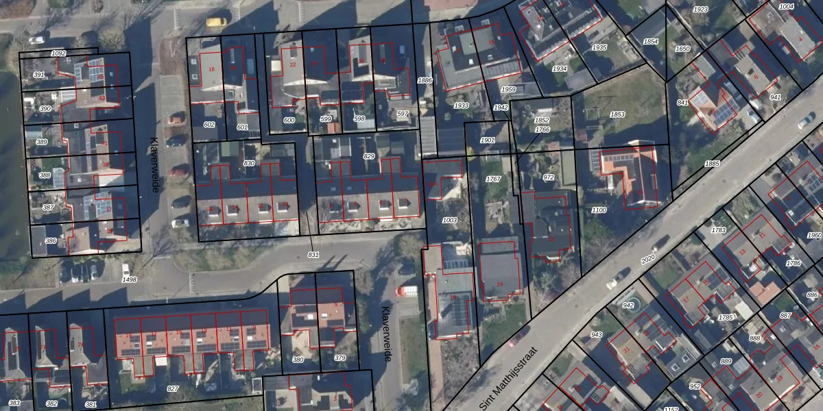 Het perceel waarop Klaverweide 2 staat heeft een oppervlakte van 630 m². Dit is een groot perceel. De perceeloppervlakte wordt geregistreerd door het Kadaster. Gedetailleerde informatie over de maten van dit perceel kunt u vinden in het rapport Kadastrale kaart met maatvoering van Klaverweide 2.