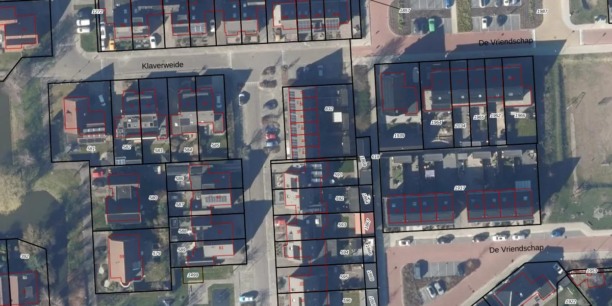 Het perceel waarop Klaverweide 42 staat heeft een oppervlakte van 545 m². Dit is een groot perceel. De perceeloppervlakte wordt geregistreerd door het Kadaster. Gedetailleerde informatie over de maten van dit perceel kunt u vinden in het rapport Kadastrale kaart met maatvoering van Klaverweide 42.