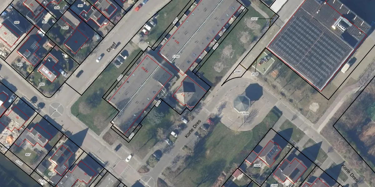 Het perceel waarop Korte Dres 1 staat heeft een oppervlakte van 2395 m². Dit is een zeer groot perceel. De perceeloppervlakte wordt geregistreerd door het Kadaster. Gedetailleerde informatie over de maten van dit perceel kunt u vinden in het rapport Kadastrale kaart met maatvoering van Korte Dres 1.