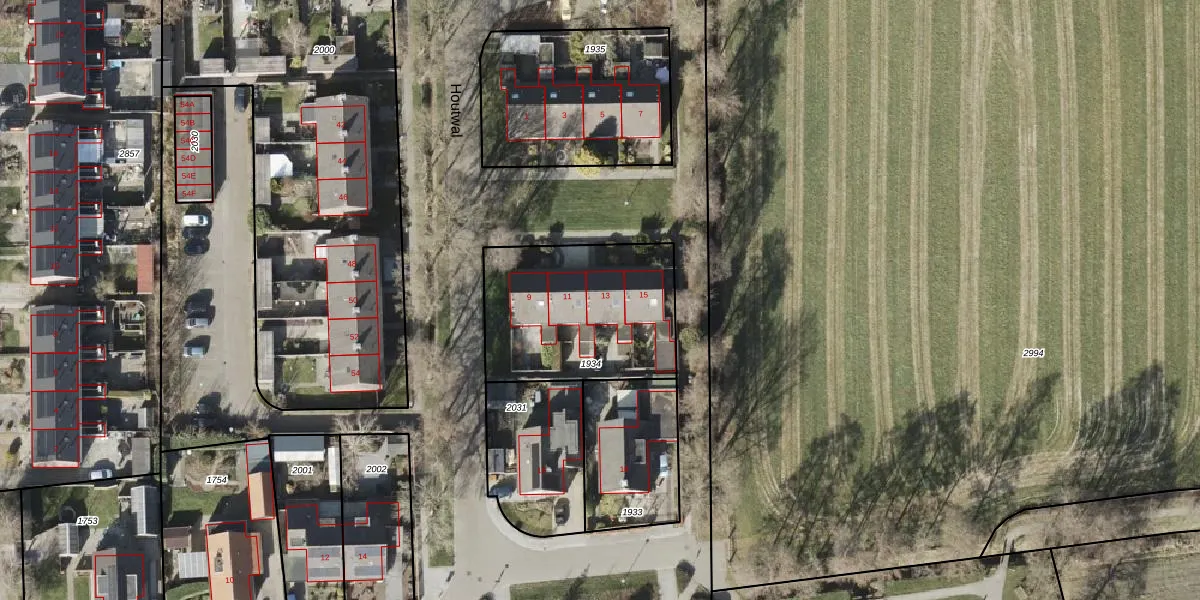 Houtwal 13 is gelegen op kadastraal perceel ODK01B1934. Deze kadastrale aanduiding is uniek en wordt gebruikt door het Kadaster om eigendomsrechten en andere zakelijke rechten vast te leggen. Het perceel maakt onderdeel uit van de kadastrale gemeente Oldekerk.