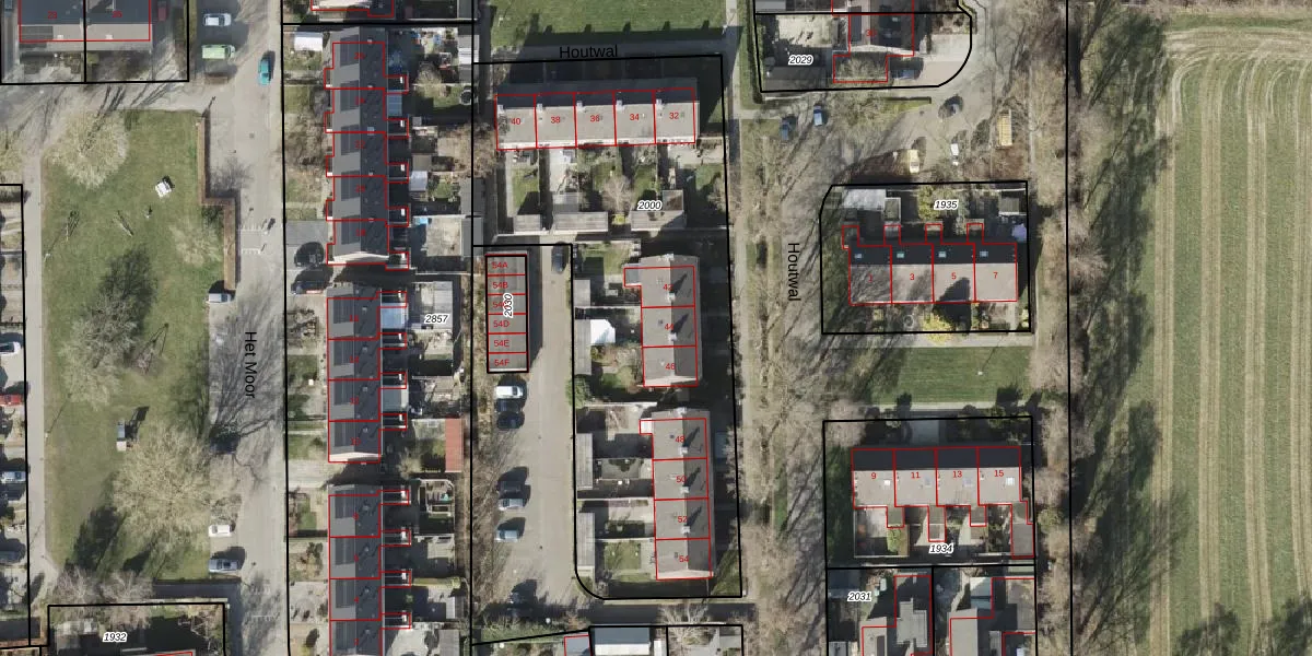 Houtwal 44 is gelegen op kadastraal perceel ODK01B2000. Deze kadastrale aanduiding is uniek en wordt gebruikt door het Kadaster om eigendomsrechten en andere zakelijke rechten vast te leggen. Het perceel maakt onderdeel uit van de kadastrale gemeente Oldekerk.