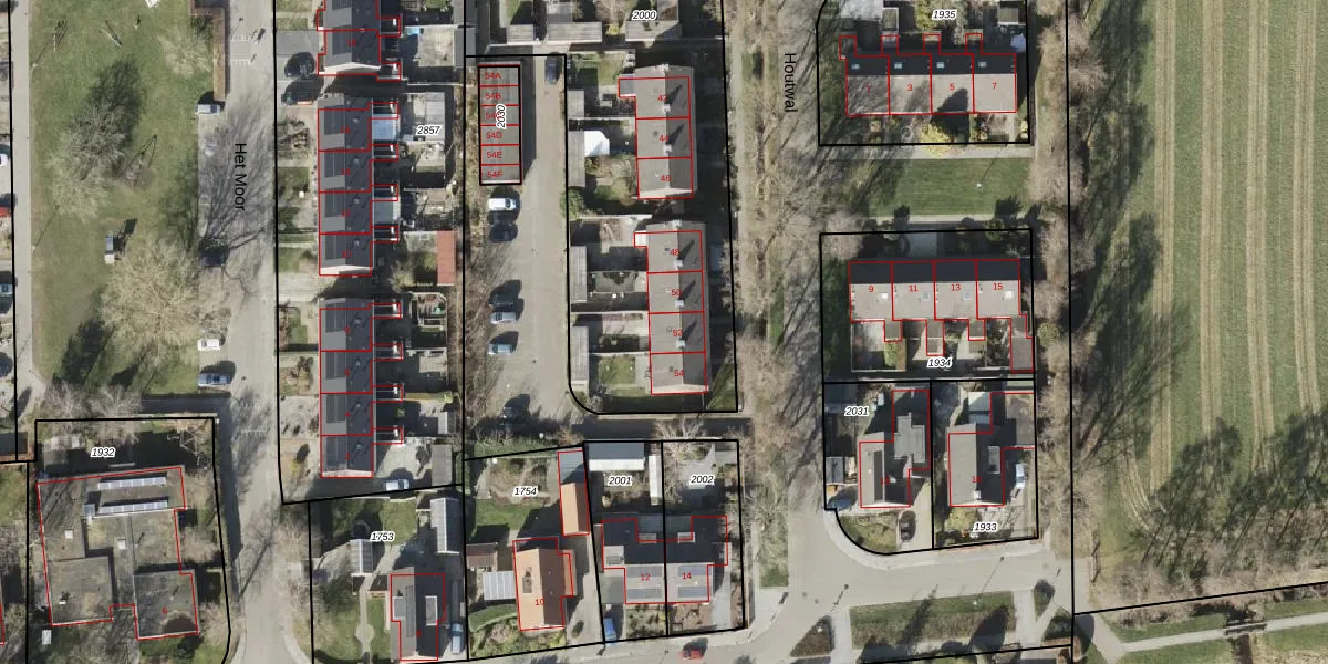 Het perceel waarop Houtwal 52 staat heeft een oppervlakte van 2411 m². Dit is een zeer groot perceel. De perceeloppervlakte wordt geregistreerd door het Kadaster. Gedetailleerde informatie over de maten van dit perceel kunt u vinden in het rapport Kadastrale kaart met maatvoering van Houtwal 52.