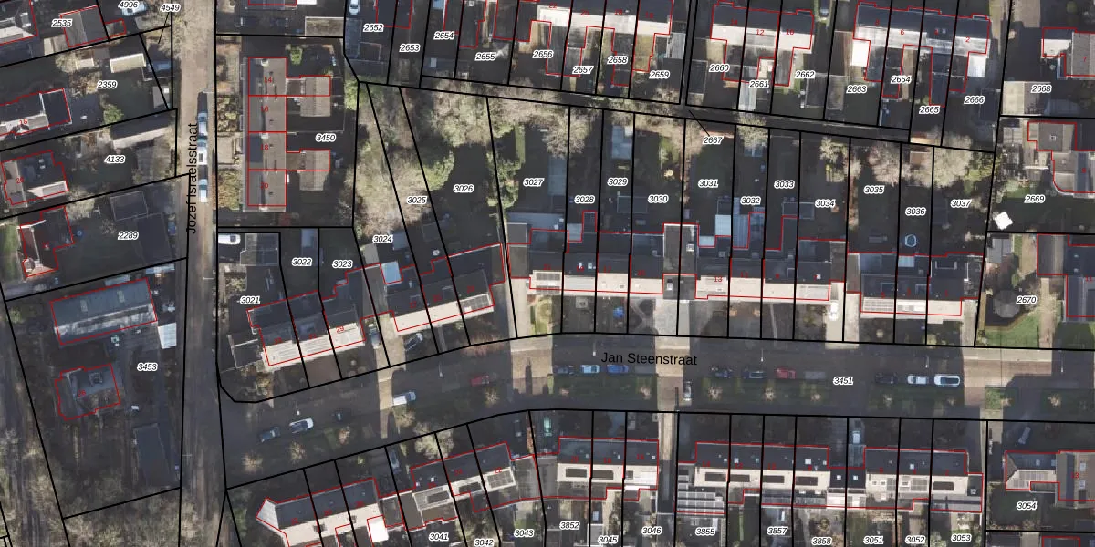Het perceel waarop Jan Steenstraat 21 staat heeft een oppervlakte van 505 m². Dit is een groot perceel. De perceeloppervlakte wordt geregistreerd door het Kadaster. Gedetailleerde informatie over de maten van dit perceel kunt u vinden in het rapport Kadastrale kaart met maatvoering van Jan Steenstraat 21.