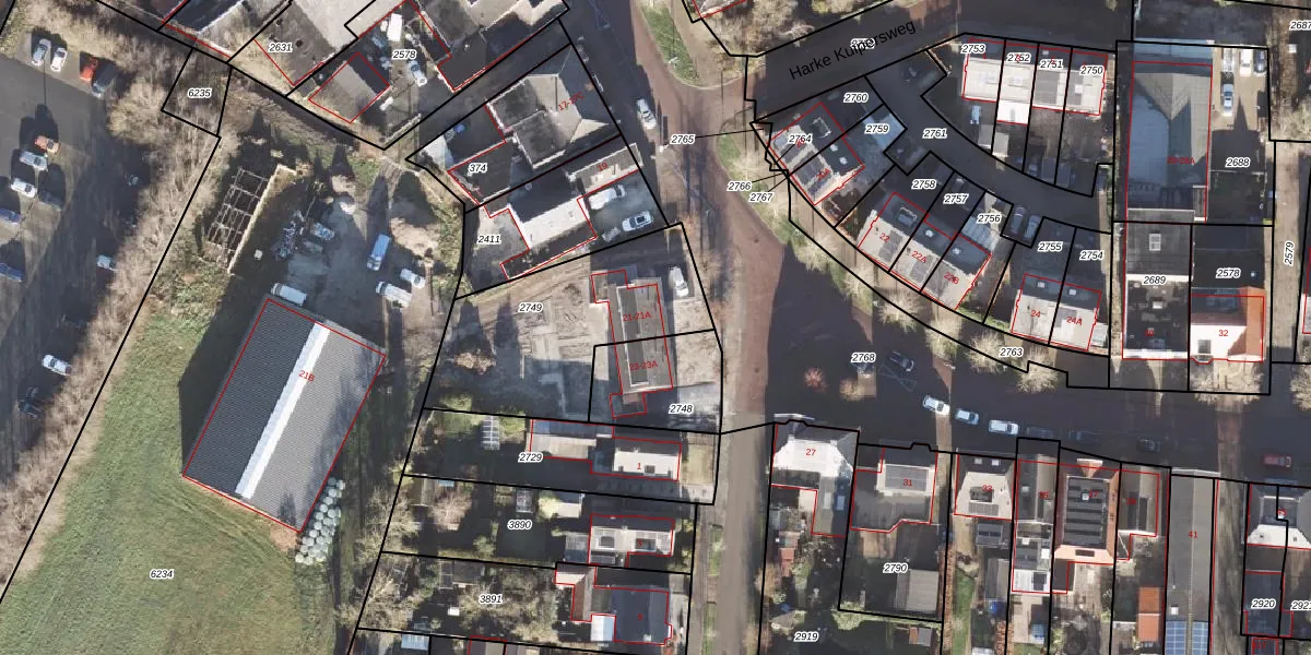 Het adres is gelegen op perceel 2749 in de sectie K en de kadastrale gemeente Roden. De kadastrale aanduiding is aldus RDN01-K-2749. De gemiddelde perceelgrootte in Roden is 5510,12 m². Dit perceel is kleiner: de perceeloppervlakte bedraagt 740 m². Het kleinste perceel in de kadastrale gemeente is 0 m² groot. De grootste perceeloppervlakte is 1,51 km². Er zijn 2 adressen aanwezig op het perceel. In de Basisregistratie Kadaster (BRK) werden de grenzen van het perceel geregistreerd op 24-02-2010.