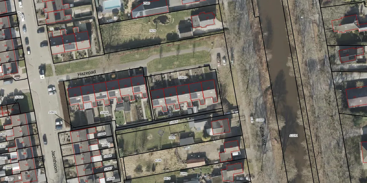 Het perceel waarop Hazepad 38 staat heeft een oppervlakte van 910 m². Dit is een groot perceel. De perceeloppervlakte wordt geregistreerd door het Kadaster. Gedetailleerde informatie over de maten van dit perceel kunt u vinden in het rapport Kadastrale kaart met maatvoering van Hazepad 38.