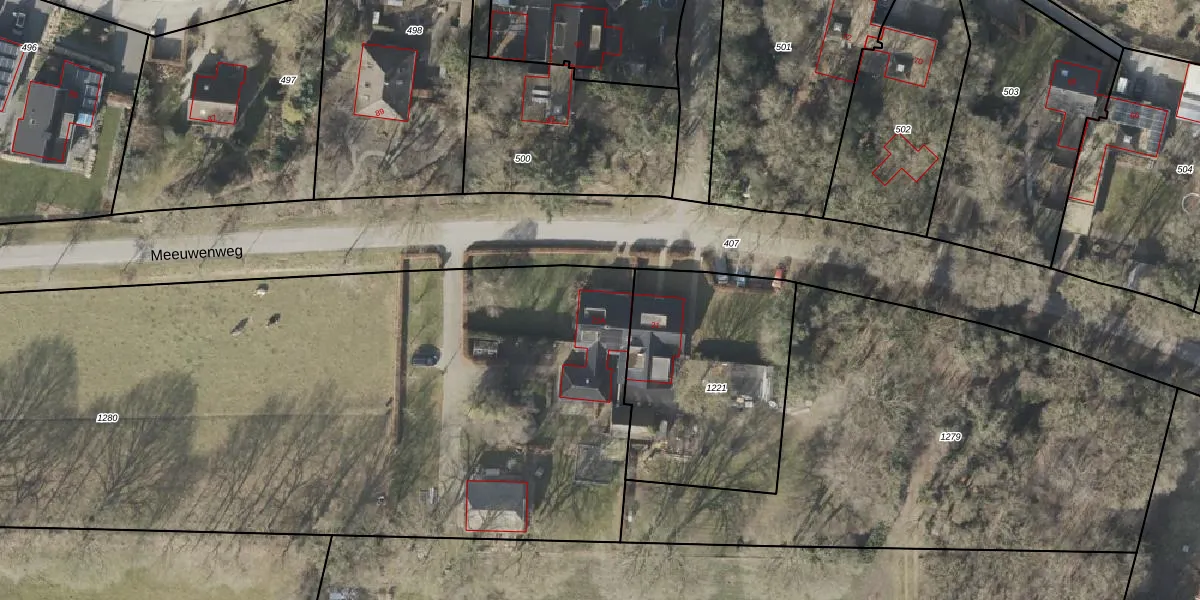 Het perceel waarop Meeuwenweg 21-A staat heeft een oppervlakte van 7660 m². Dit is een zeer groot perceel. De perceeloppervlakte wordt geregistreerd door het Kadaster. Gedetailleerde informatie over de maten van dit perceel kunt u vinden in het rapport Kadastrale kaart met maatvoering van Meeuwenweg 21-A.