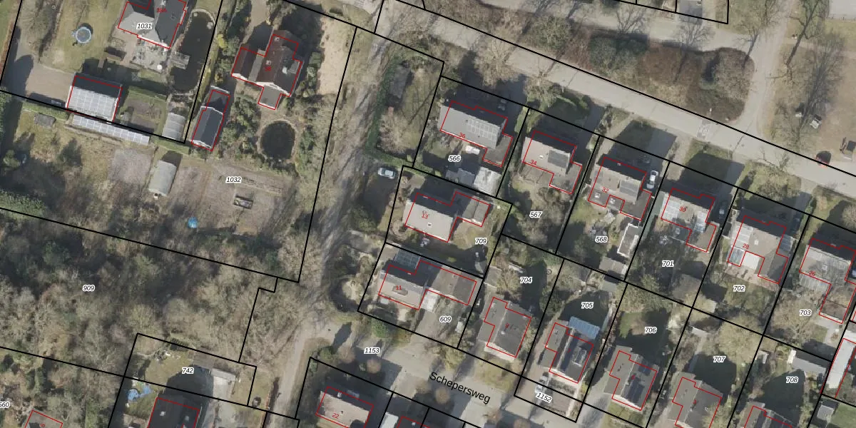 Het perceel waarop Schepersweg 13 staat heeft een oppervlakte van 474 m². Dit is een groot perceel. De perceeloppervlakte wordt geregistreerd door het Kadaster. Gedetailleerde informatie over de maten van dit perceel kunt u vinden in het rapport Kadastrale kaart met maatvoering van Schepersweg 13.