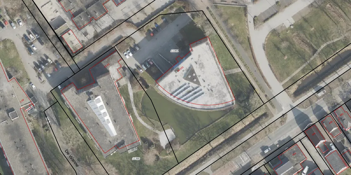 Het perceel waarop De Wanne 91 staat heeft een oppervlakte van 4033 m². Dit is een zeer groot perceel. De perceeloppervlakte wordt geregistreerd door het Kadaster. Gedetailleerde informatie over de maten van dit perceel kunt u vinden in het rapport Kadastrale kaart met maatvoering van De Wanne 91.