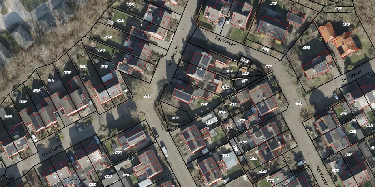 Het perceel waarop het Bivank 20 staat heeft een oppervlakte van 411 m². Dit is een groot perceel. De perceeloppervlakte wordt geregistreerd door het Kadaster. Gedetailleerde informatie over de maten van dit perceel kunt u vinden in het rapport Kadastrale kaart met maatvoering van het Bivank 20.