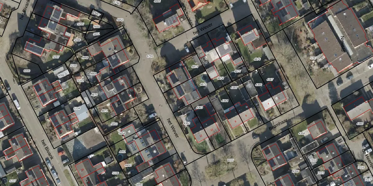 Het perceel waarop het Wever 2 staat heeft een oppervlakte van 311 m². Dit is een groot perceel. De perceeloppervlakte wordt geregistreerd door het Kadaster. Gedetailleerde informatie over de maten van dit perceel kunt u vinden in het rapport Kadastrale kaart met maatvoering van het Wever 2.